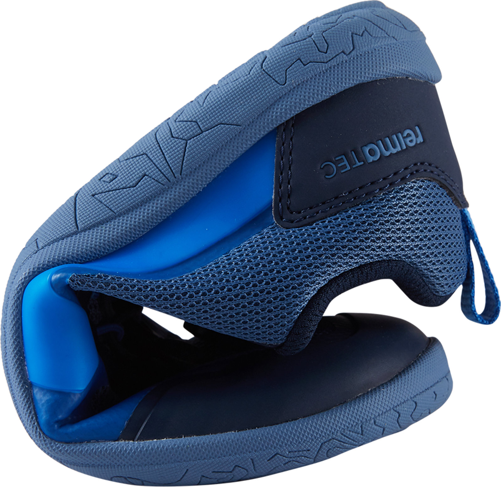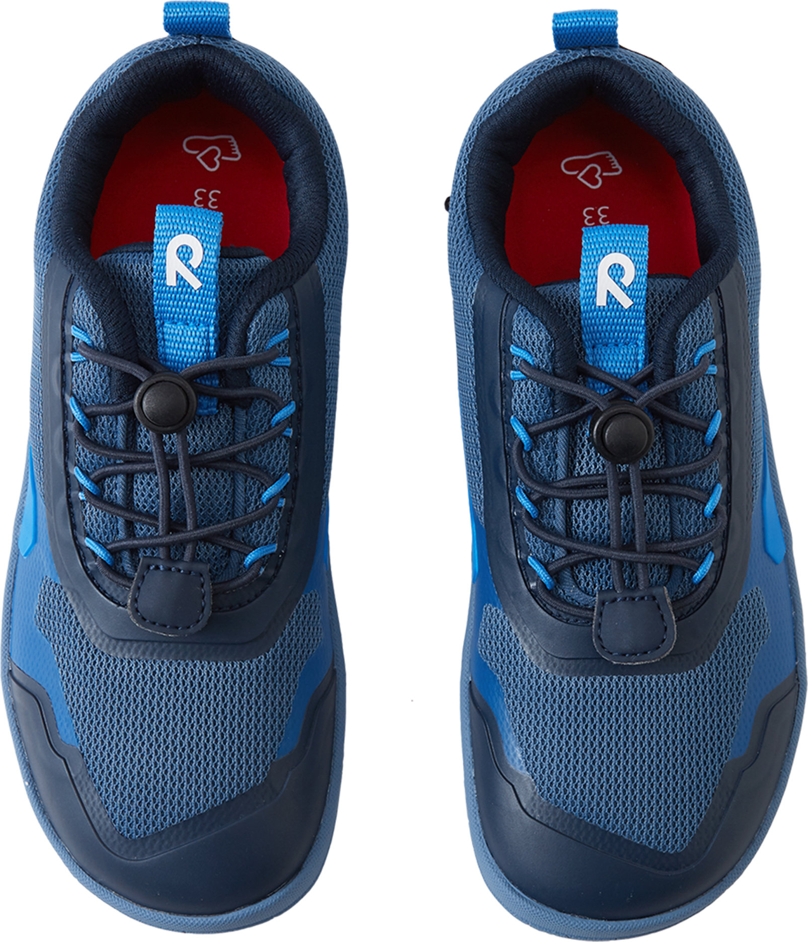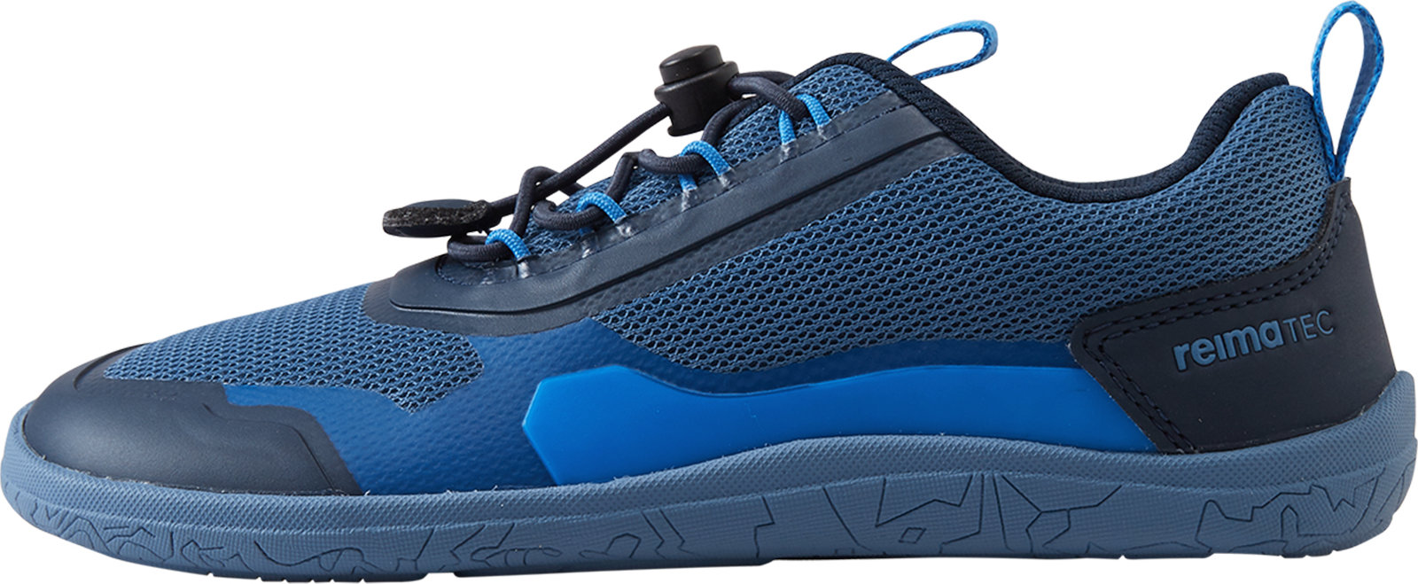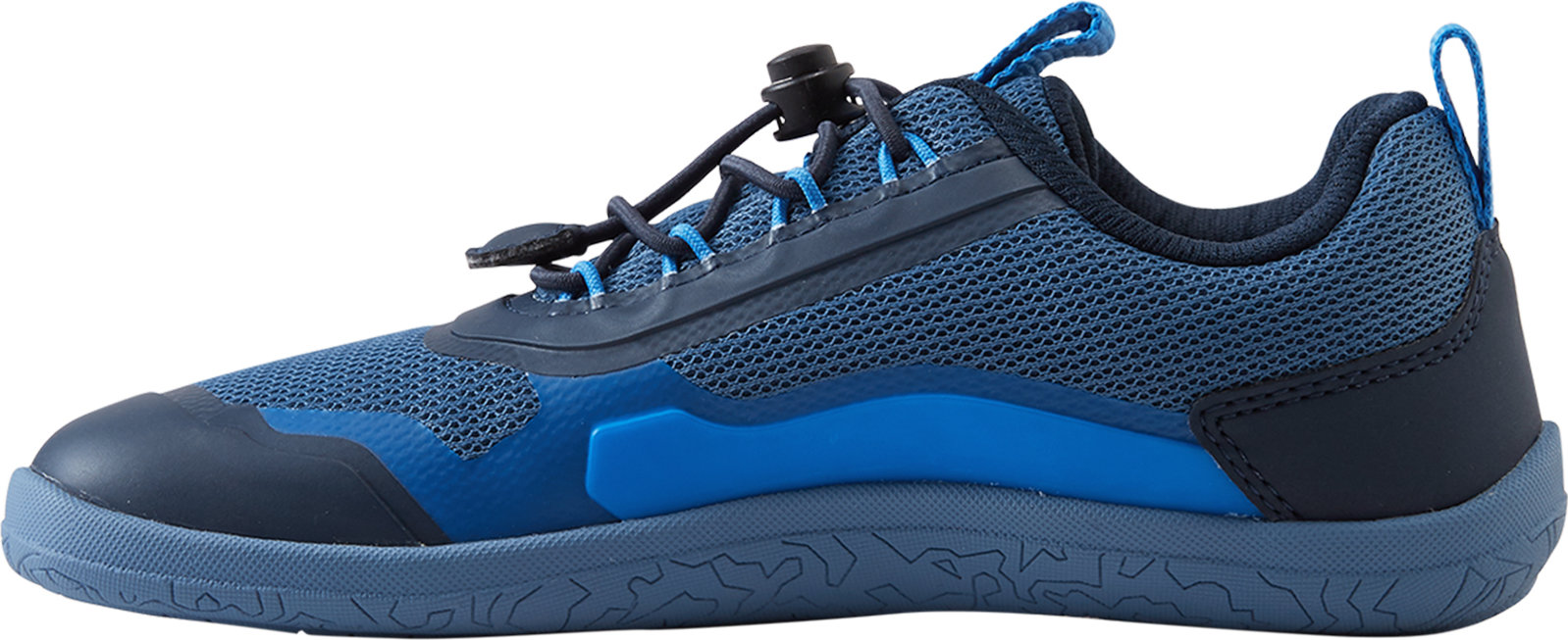 The Reimatec barefoot sneaker Tallustelu keeps kids' feet dry and happy. The minimalist last is wide enough for all the toes to grow straight, and the sole is entirely without heel drop, so kids can experience a more natural stance and undisturbed gait. The sole is thin, only 4 mm, and flexible, which allows for better sensing of the ground and activates the muscles of the foot. With comfortable, removable insoles and easy elastic laces, this award-winning shoe is first choice for barefoot comfort in changing weather.