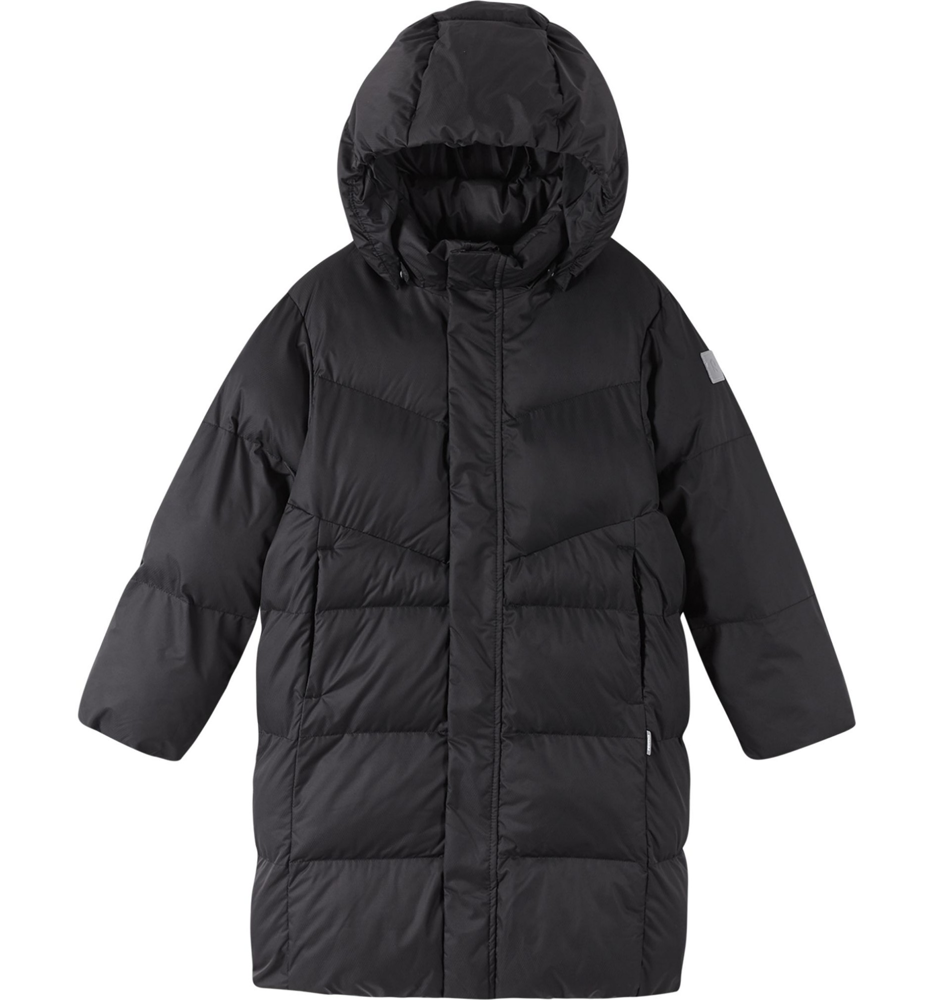 This kids' long winter jacket has a fluffy, down-like filling that's 100% recycled - sustainable warmth from water bottles! The shell fabric is windproof and breathable and has a very subtle diamond weave surface pattern that's only visible up close. Water and dirt repellent, you can wash it less, yet the material is tumble dryer-friendly, too. The classic Reima style comes with a detachable hood that protects from winter winds.