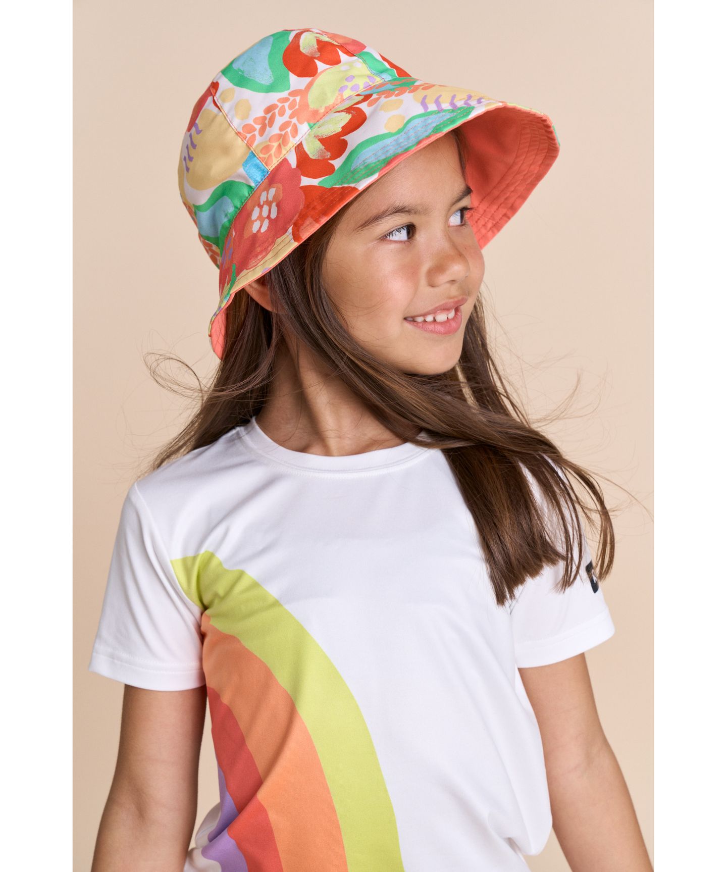 Reversible kids' sunhat to protect the face and eyes. Made from a UV protective fabric.