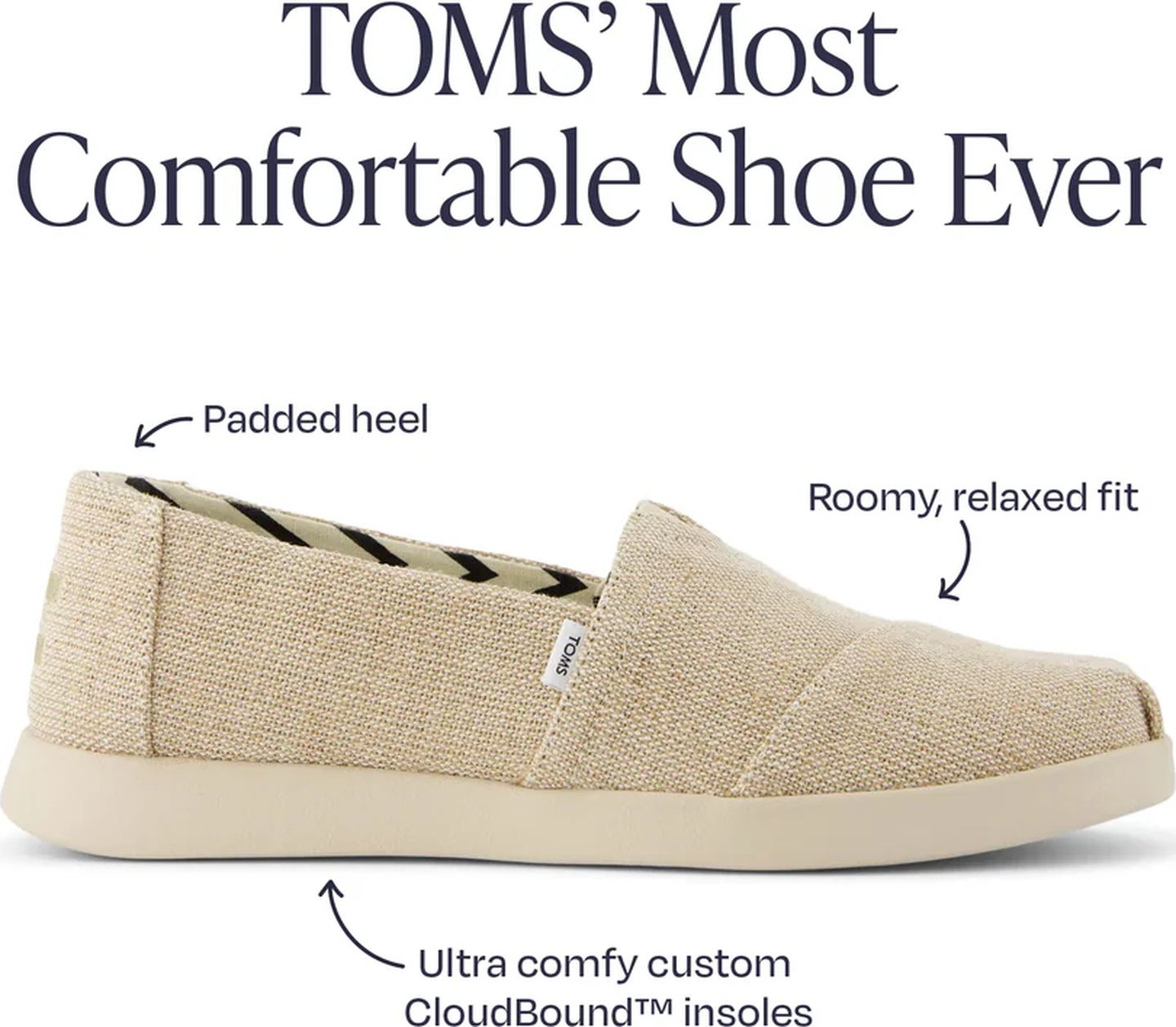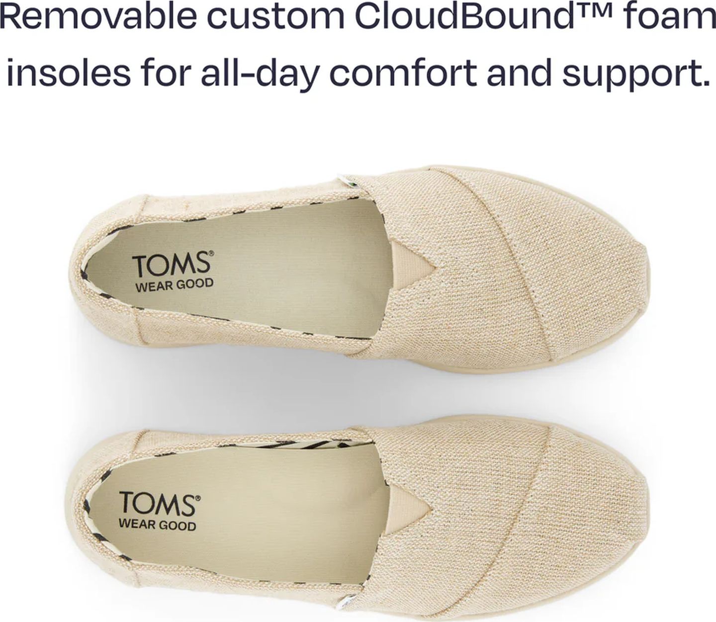 The Alpargata Plus—the most comfortable shoe we've ever made, featuring a roomy fit, natural, undyed uppers and custom CloudBound™ insoles that feel light and airy on your feet. See the world in the shoe designed to leave an impact.